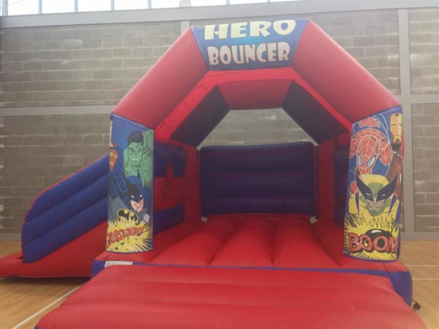 Complete with slide and artwork featuring Batman, Hulk, Spiderman, Iron Man and Wolverine.
